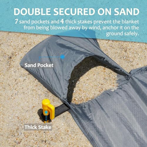 - تثبيت آمن في الأيام العاصفة: مزودة بـ 7 جيوب رملية و4 أوتاد متينة لإبقائها ثابتة في مكانها، ومنعها من التطاير في الأيام العاصفة على الشاطئ أو في الحديقة أو المخيم.