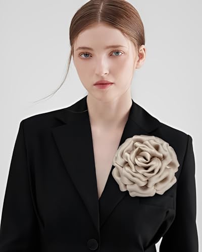 IMINI - Oversized Silk Satin Rose Brooch for Women - 16cm Luxury Fabric Flower Large Lapel Pin, Wedding Party Jewellery Gift for Dresses, Suits & Banquets (Multi-Colour)