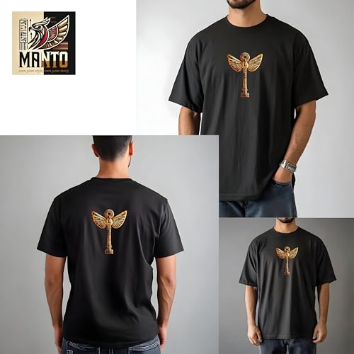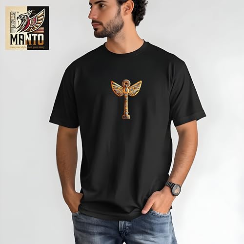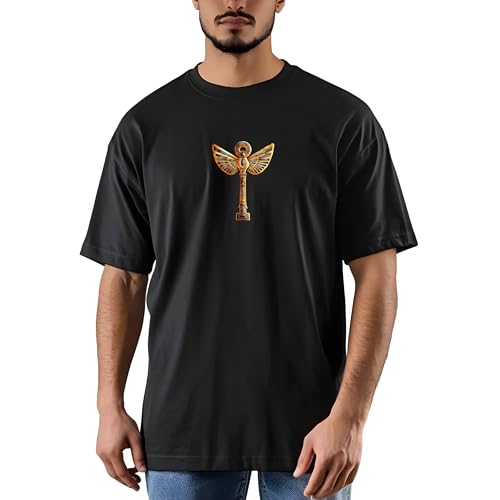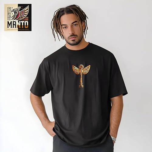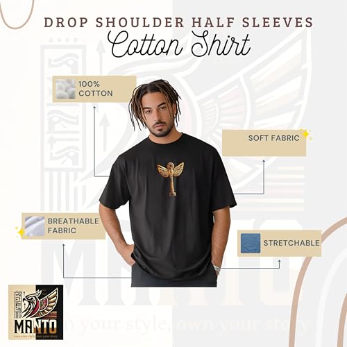 Generic - تيشيرت كبير الحجم للرجال - قطن 100% - نصف كم بكتف منسدل من مانتو