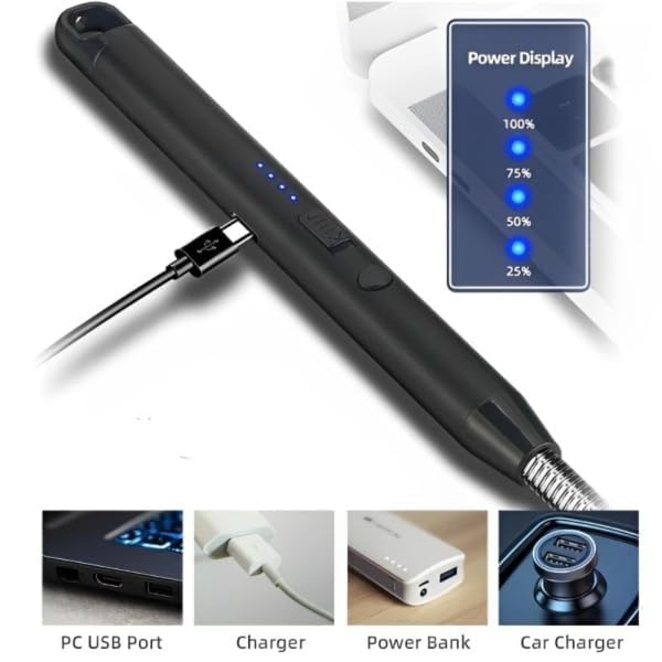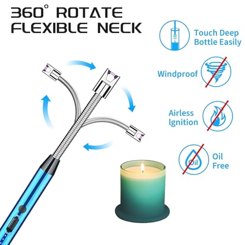 OVIARA - ولاعة شموع USB قابلة لإعادة الشحن مع مؤشر ليد، ولاعة 360 درجة طويلة بدون لهب للشموع والعلاج العطري والتخييم والشواء من اوفيارا
