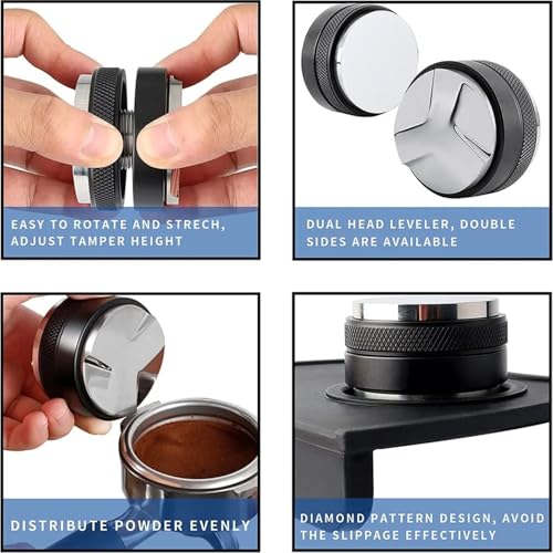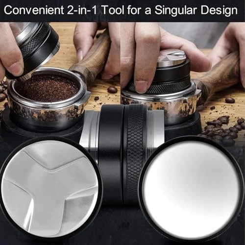 - ✅ 【Dual Head】2-in-1 distributor/leveler and tamper. The leveler ensures filled more tightly, and the distributor makes the coffee powder in the bowl uniform and even.