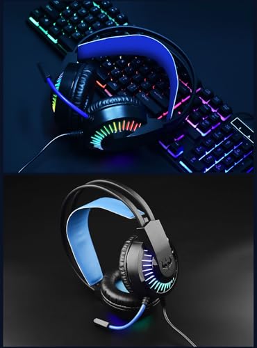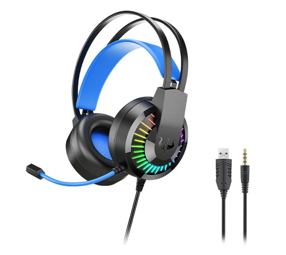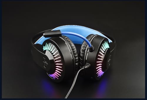 Ovleng - سماعات رأس للألعاب بميكروفون إلغاء الضوضاء، سماعات بنظام صوت ستيريو محيطي وتحكم بمستوى الصوت، سماعات متوافقة مع أجهزة الكمبيوتر والماك وأجهزة تشغيل ألعاب الفيديو الرقمية من اوفلينج، أسود وأزرق، GT-68