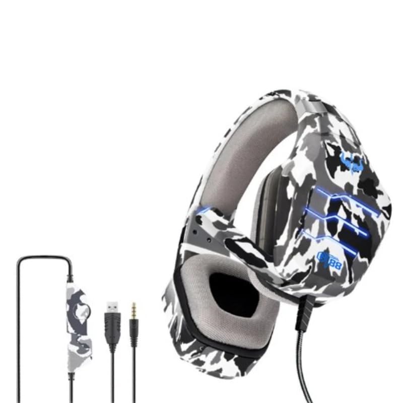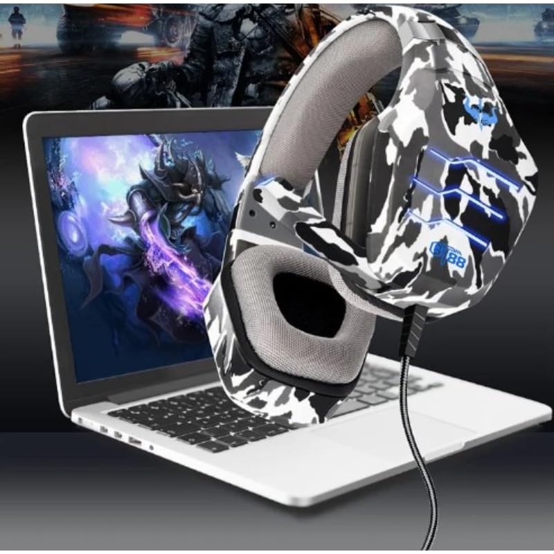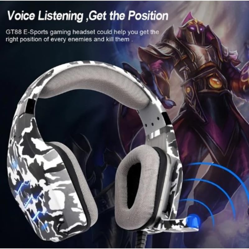 Ovleng - سماعة رأس سلكية فوق الأذن للرياضات الإلكترونية مع صوت غني وميكروفون عازل للضوضاء وسائد أذن مريحة وأداء عملي متوافقة مع اللاب توب والكمبيوتر الشخصي GT-88 من اوفلينج، رمادي مموه