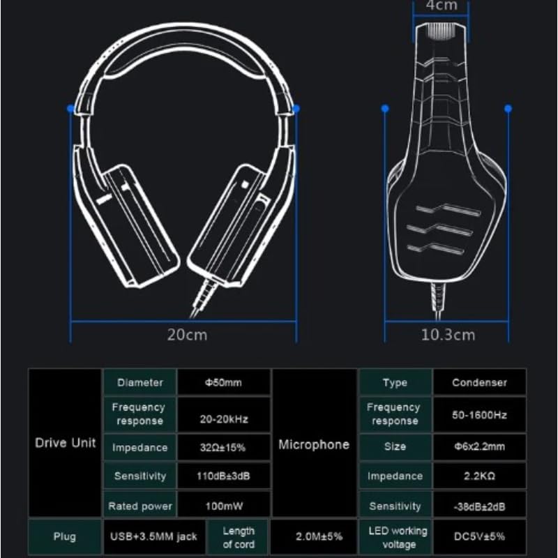 - متوافق مع الأجهزة المختلفة: تعمل سماعة الرأس مع الكمبيوتر واللاب توب وPS4 وأي جهاز.