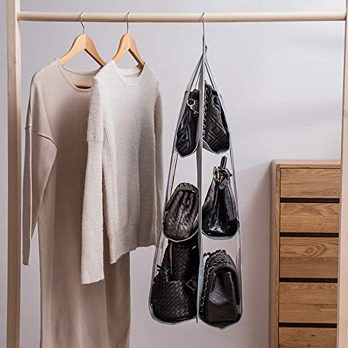 Ovyuzhen - Handbags Organizer 6 Pockets Non-Woven Fabric Clear Purse Handbag Storage Bag Pouches Clear Purse Hanging Organizer Closet (1pack/Gray)