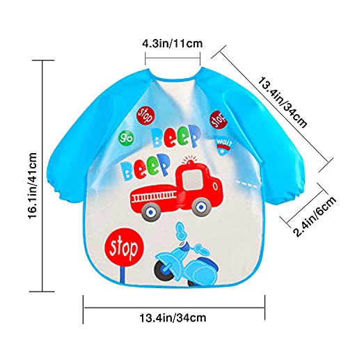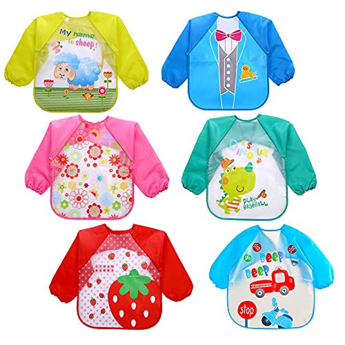 OWill - OWill 6 Pcs Waterproof Long Sleeve Bib,Unisex Feeding Bibs,Cartoon Apron for Infant or Toddler 6 Months to 3 Years Old