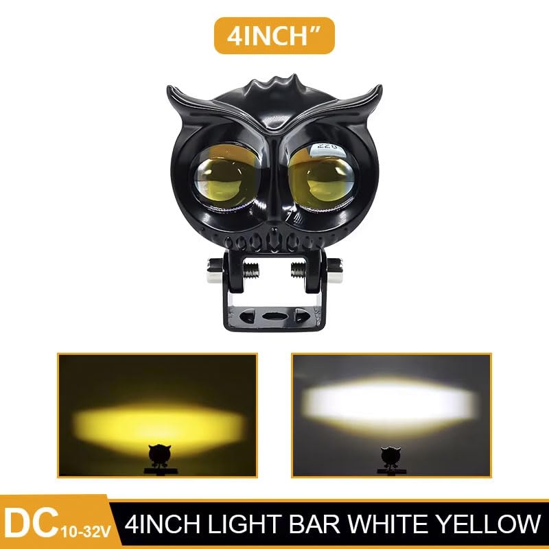 - Unique Design: Featuring an owl-inspired shape with large yellow and white LED lenses this fog light adds a stylish touch to your motorcycle