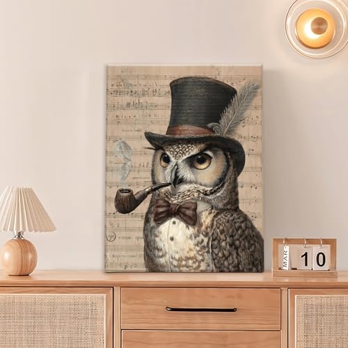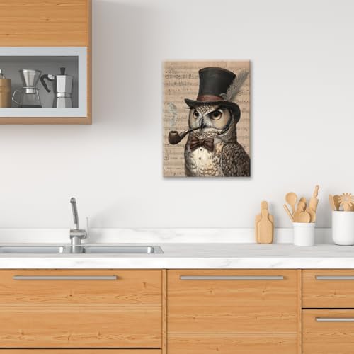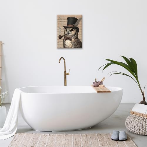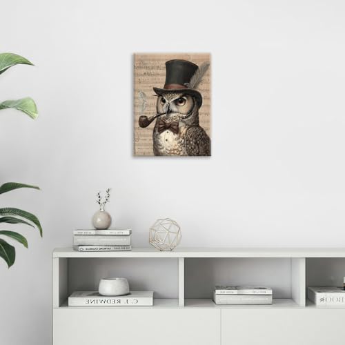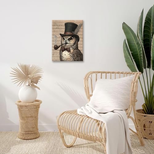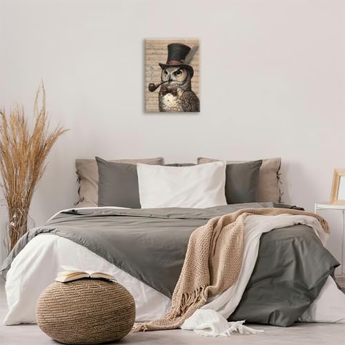 Trulave - لوحة فنية جدارية بتصميم بومة من القماش بتصميم بومة من ستيمبنك، لوحة باطار ريفي، اعمال فنية طبيعية للمناظر الطبيعية للحمام وغرفة المعيشة وغرفة النوم، 16 انش طول × 12 انش عرض