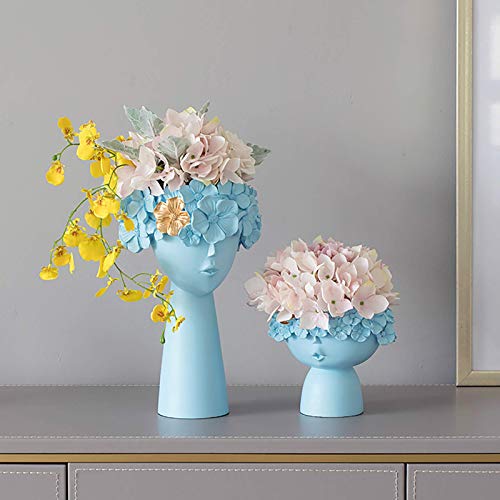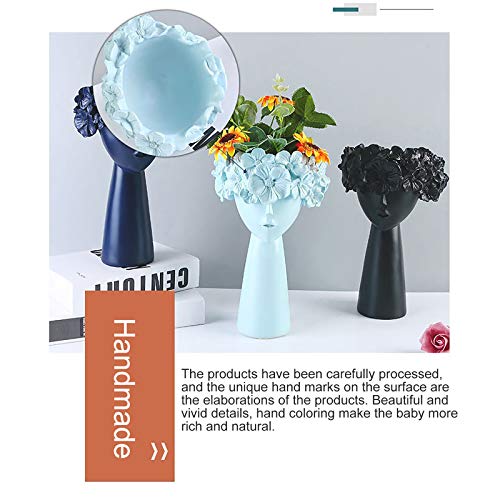 Owl's-Yard - فازة بتصميم شخصية فتاة لطيفة من الراتنج، للزهور الصناعية والنباتات العصارية في غرفة المعيشة وغرفة النوم من أولز يارد (لون أزرق غامق، مقاس كبير)