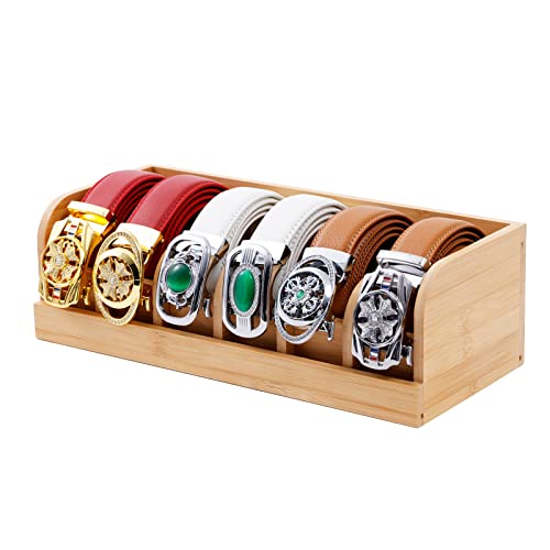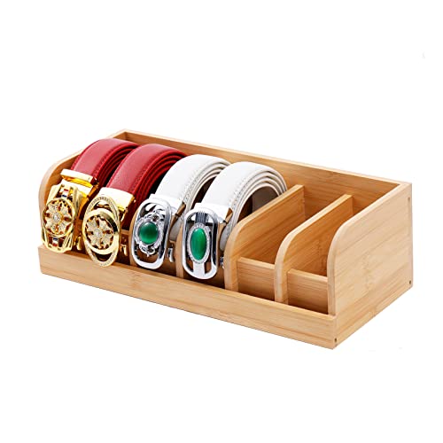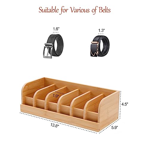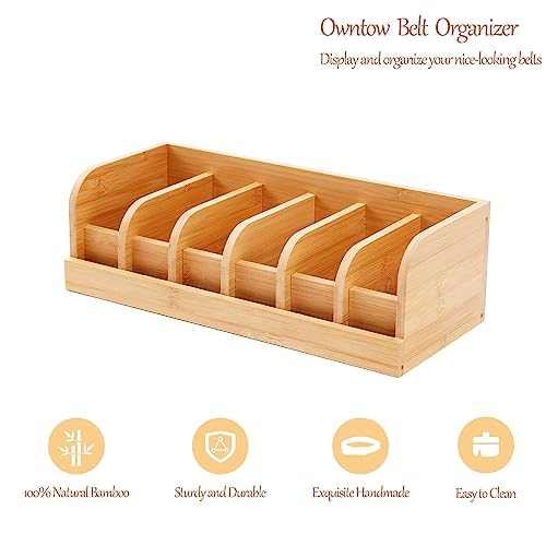 Owntow - منظم أحزمة من اونتاو، منظم أحزمة من الخيزران للخزانة، 6 أقسام شماعة أحزمة للخزانة، حامل حزام للخزانة والدرج، منظم تخزين الأحزمة وشاشة عرض للرجال والنساء