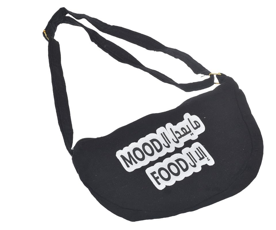 OX - شنطة خصر من او اكس للنساء مصنوعة من القماش بتصميم حديث وبطباعة عليها عبارات هزلية مع سوستة، لون أسود، موديل W-32
