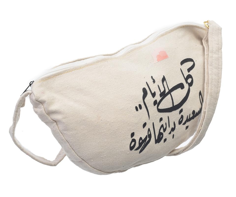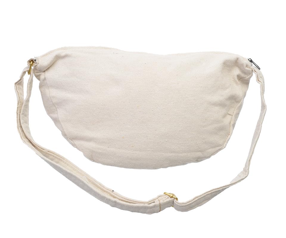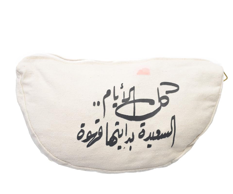 OX - شنطة خصر حريمي من او اكس قماشية عصرية مطبوعة عليها عبارات هزلية مع سوستة، اوف وايت - W-34