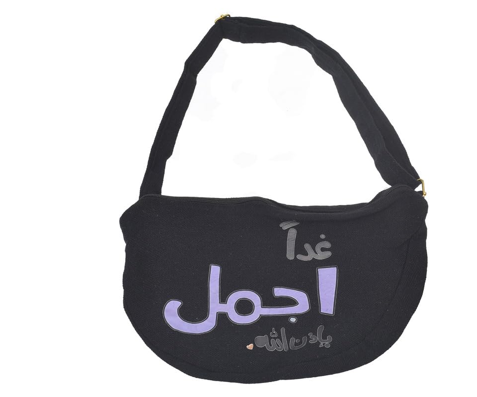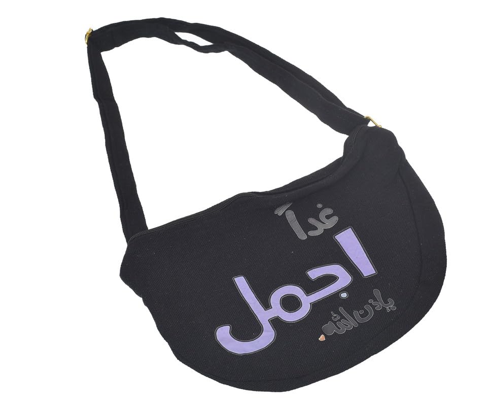 OX - OX W-37 Comic Phrases Fabric Fashion Printed Waist Bag with Zipper for Women, Black