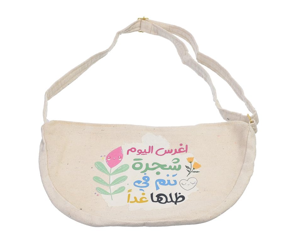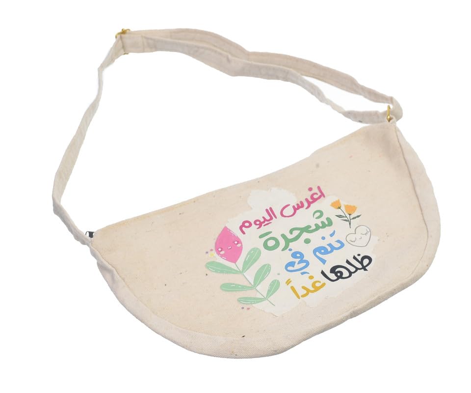 OX - شنطة خصر قماشية عصرية مطبوعة عليها عبارات هزلية مع سوستة للنساء من او اكس، اوف وايت - W-40