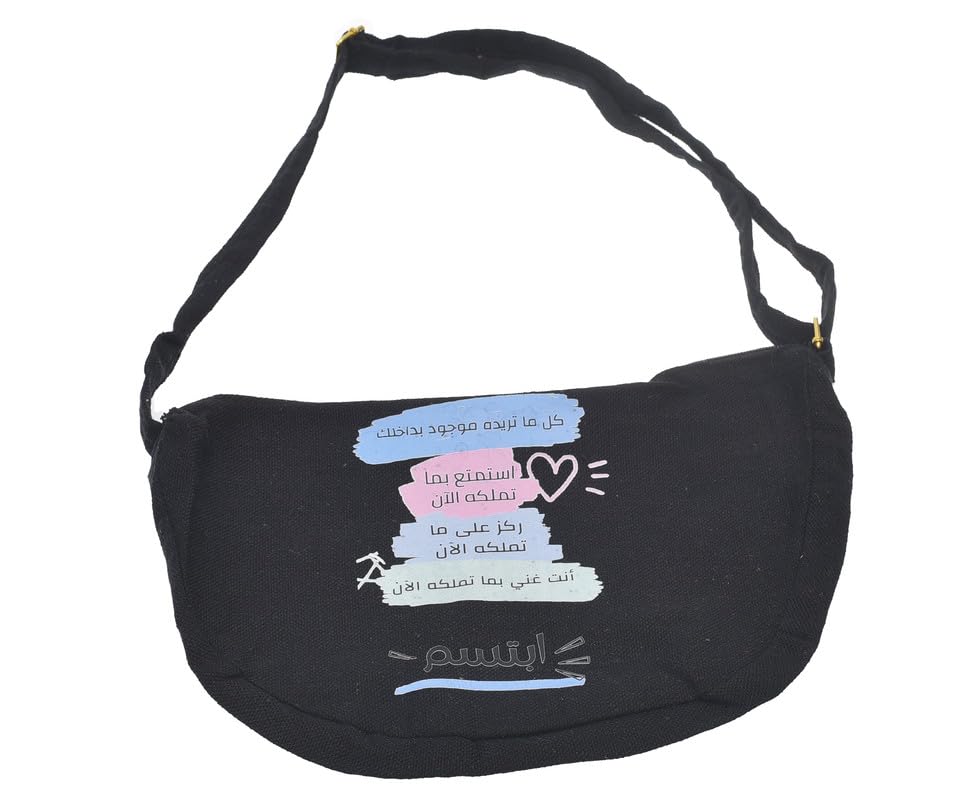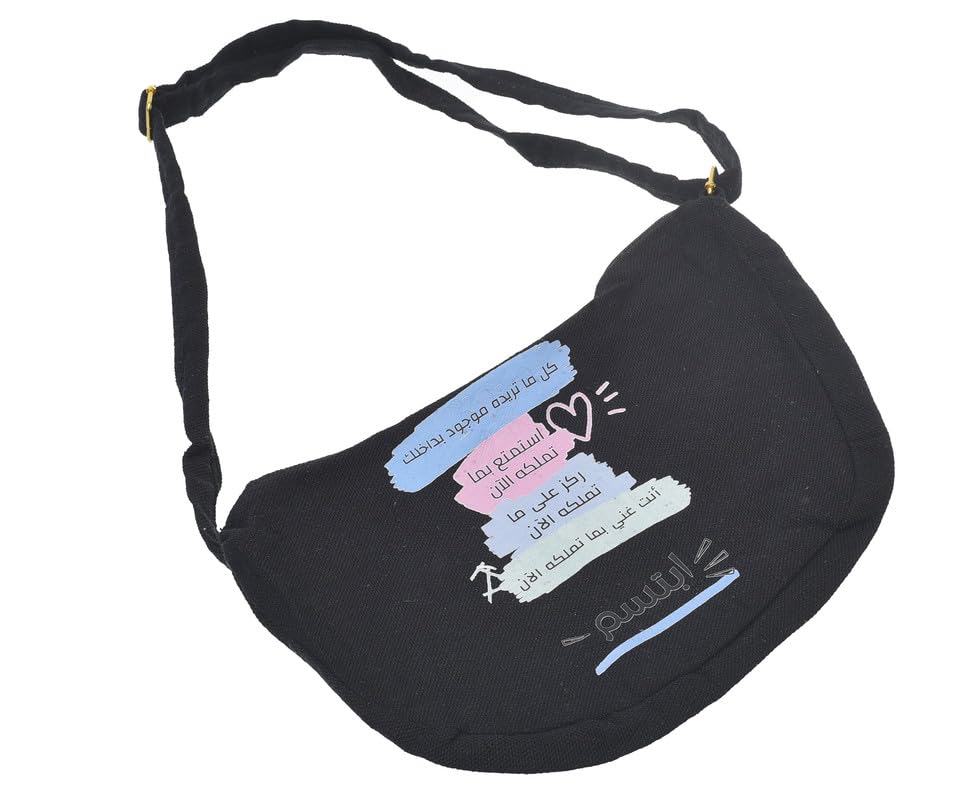 OX - OX W-43 Comic Phrases Fabric Fashion Printed Waist Bag with Zipper for Women, Black