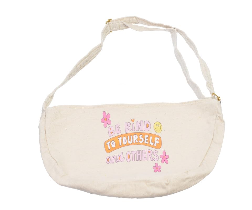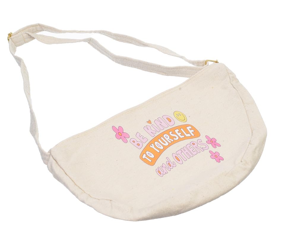 OX - شنطة خصر عصرية للنساء مصنوعة من القماش بسوستة وطباعة عبارات هزلية، لون اوف وايت - موديل W-68 من او اكس