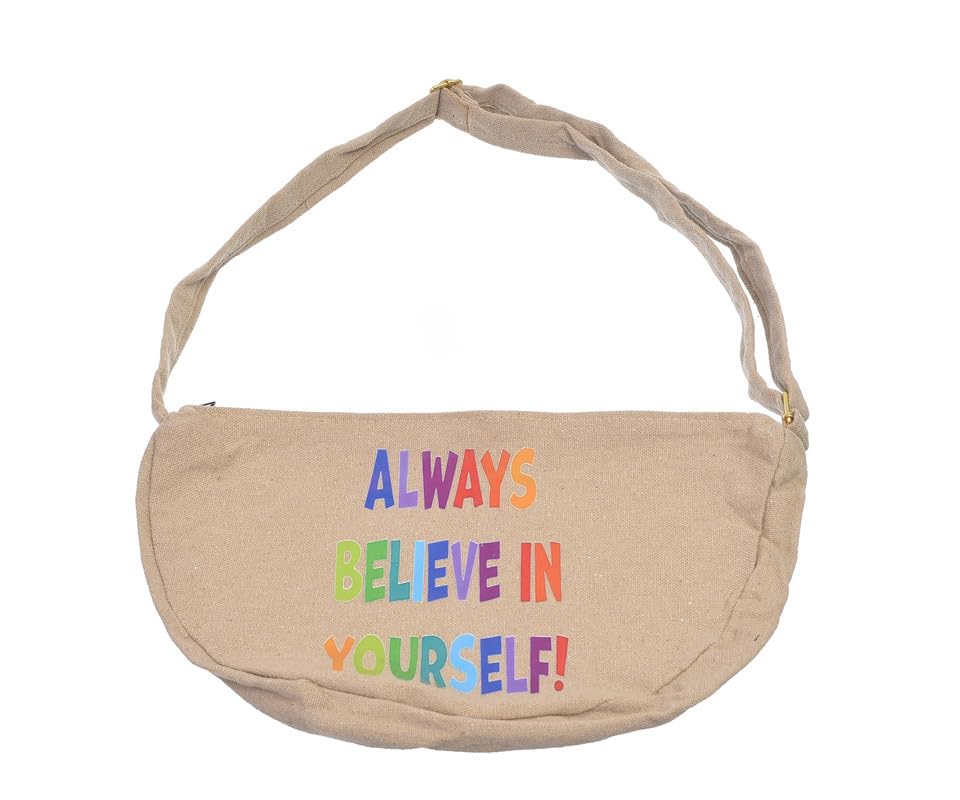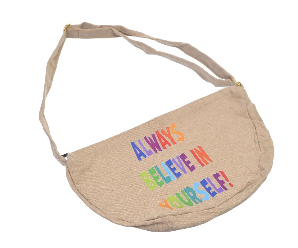 OX - OX W-77 Comic Phrases Fabric Fashion Printed Waist Bag with Zipper for Women, Beige