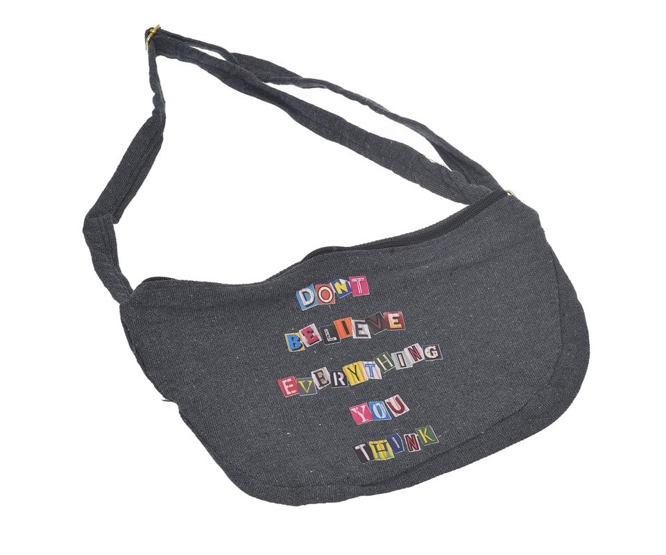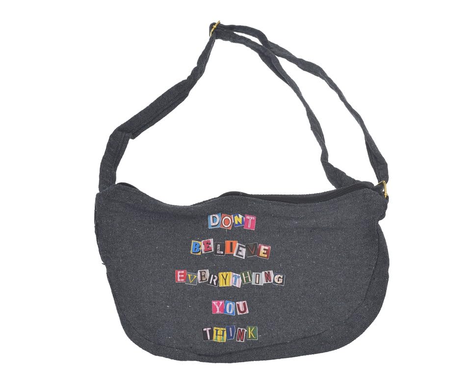 OX - شنطة خصر قماشية مطابقة للموضة مطبوع عليها عبارات هزلية مع سوستة للنساء من او اكس، لون رمادي، W-86