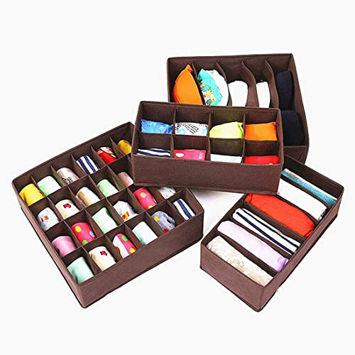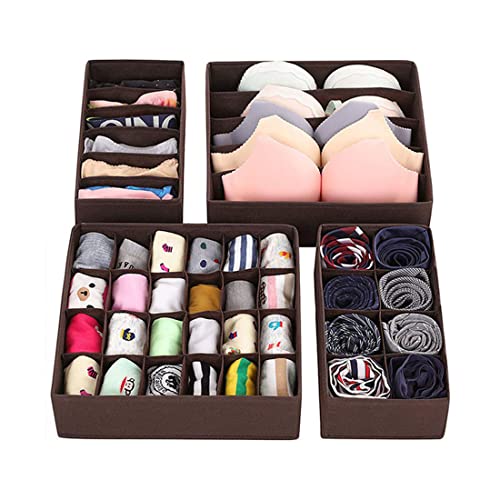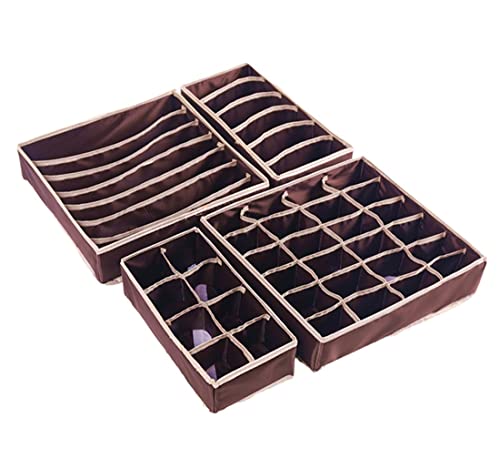 Generic - منظم أدراج من قماش اوكسفورد قابل للطي فواصل لتنظيم وتخزين الملابس الداخلية والشرابات وحمالات الصدر والملابس بلون بني 4 قطع