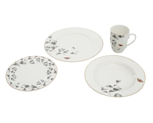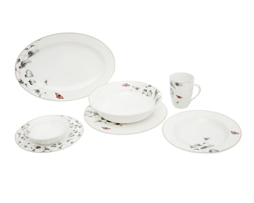 Oxford - طقم عشاء بورسلين من اوكسفورد، كود 10، 32 قطعة، فراشة بلون أسود