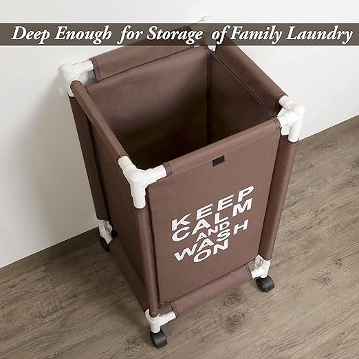 - عربة غسيل بعجلات، تضمن سهولة الحركة وحل مشكلة الرفع الثقيل. العجلات الدوارة متينة للدوران في جميع الاتجاهات. طلاء بلاستيكي بالداخل - السطح الداخلي لعربة أكياس الغسيل هذه مقاوم للرطوبة ومثالي للغسيل الجاف أو الرطب.