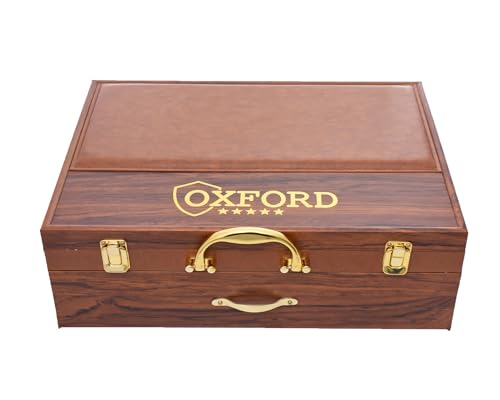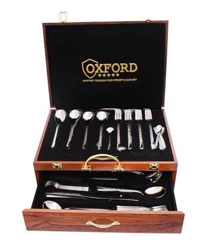 Oxford - طقم معالق من اوكسفورد، من فولاذ مقاوم للصدأ، مع شنطة من الخشب والجلد، لون فضي، 86 قطعة، MD-29ML