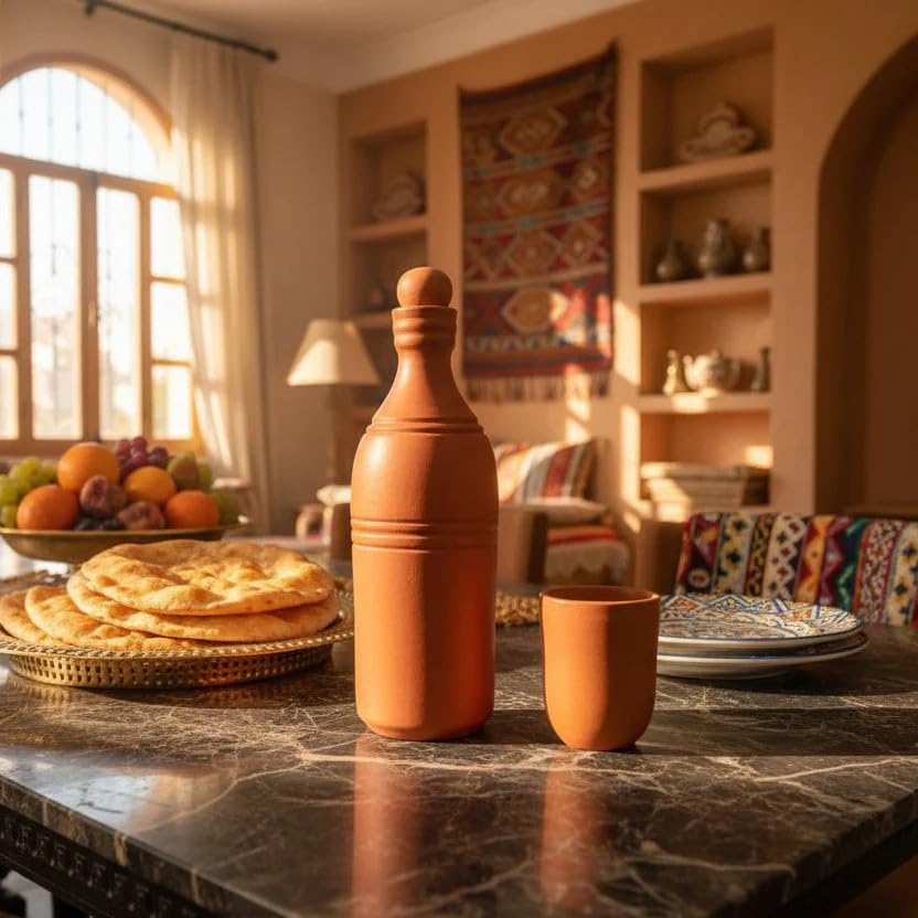 - NATURAL CLAY CONSTRUCTION: Handcrafted terracotta olla-style water bottle made from natural alkaline clay that naturally cools and oxygenates water for enhanced taste and freshness
