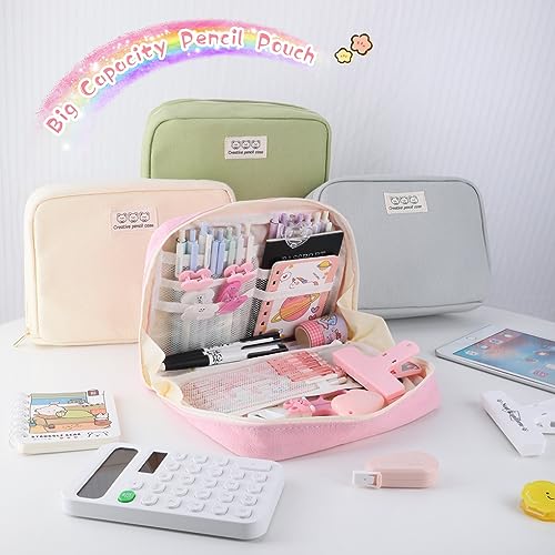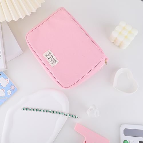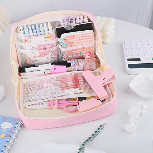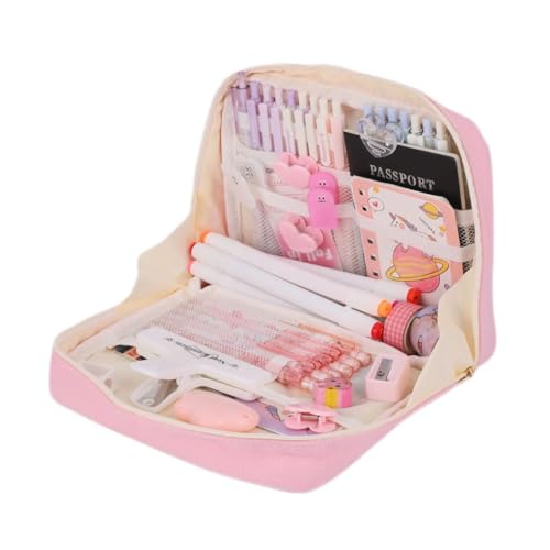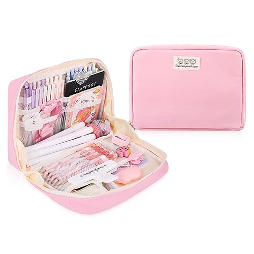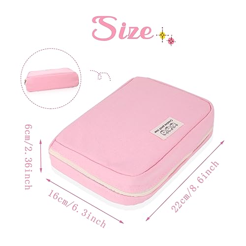 Oyachic - Oyachic Wide Opening Pencil Case Pen Bag Pouch Oxford Box Holder with Mesh Storage Pocket Organizer Stationery Cosmetic Women Travel Office Supplies (Pink)