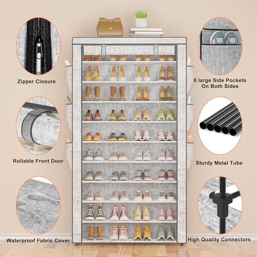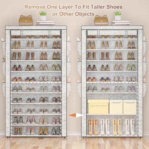 - LARGE CAPACITY: 10 tier closet shoe organizer for closet holds 50-56 pairs of shoes. The entryway shoe storage cabinet helps you maximize your limited space while providing large capacity! The shoe shelf for closet totally meet your daily organization. This closed shoe rack expandable is a good storage helper adding fun to your organization!