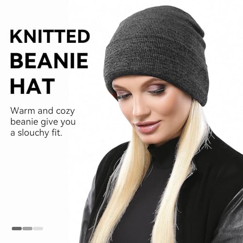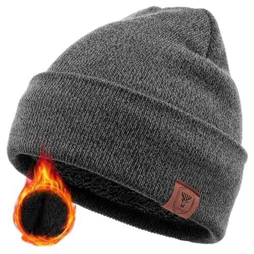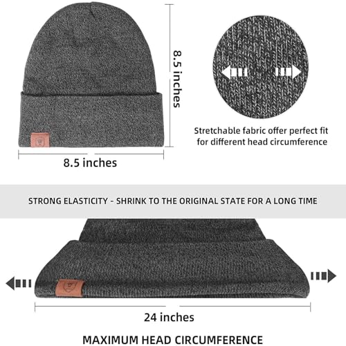 OZERO - OZERO Winter Beanie Hat for Men and Women: Warm Knit Skull Hat with Thermal Thick Polar Fleece Lining Snow Cap Winter Gifts for Family and Friends - Black/Grey