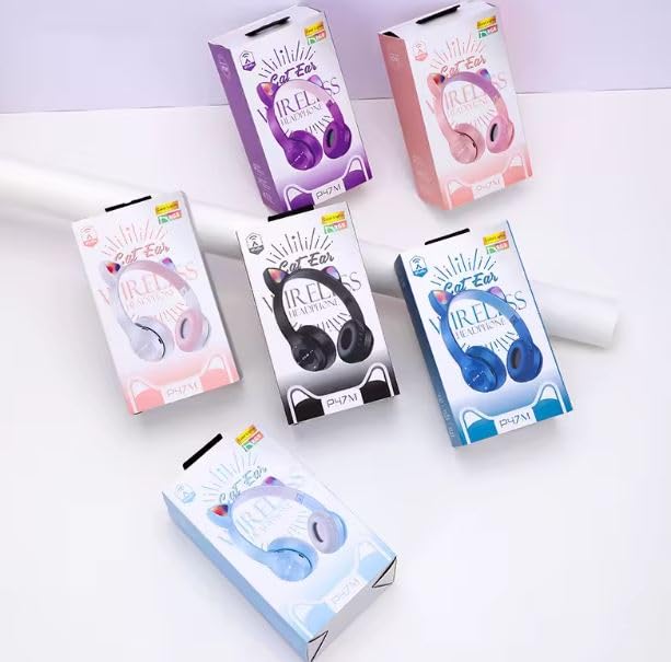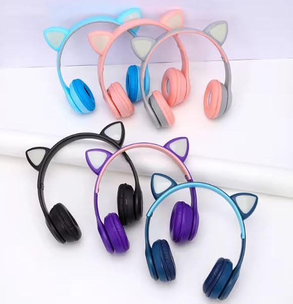 - تصميم أذن قطة: سماعات رأس لاسلكية بتصميم مميز مع أذني قطة وإضاءة LED ملونة تضيف لمسة جمالية وعصرية أثناء الاستخدام