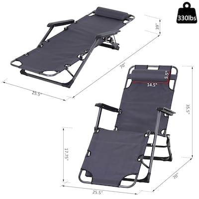 Generic - Pacific Pass Mid-Size Folding Chaise Lounge Chair with Headrest, Adjustable Anti-Gravity Chaise Lounge Chair for Camping, Garden, Patio, Lawn, Load 136kg, Black