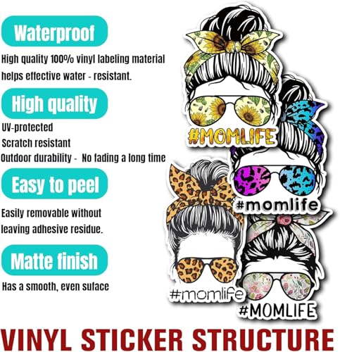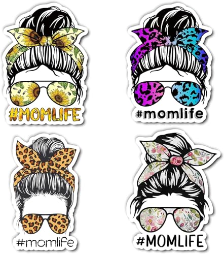 Generic - Pack 4PCS Mom Life Stickers Messy Bun Sunglass Vinyl Waterproof Decals Decor Water Bottle Laptop magy storePhone Guitar Car Truck Window Scrapbook Skateboard Tumbler Gifts Birthday Mothers Day