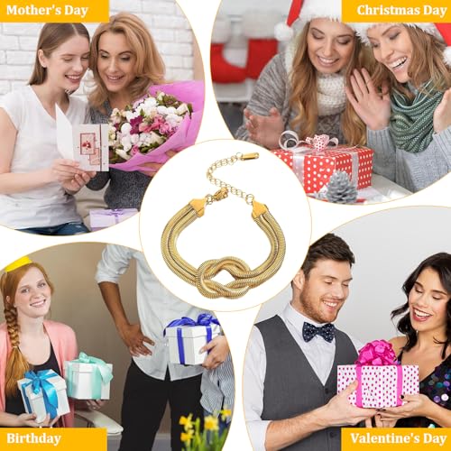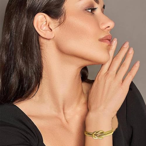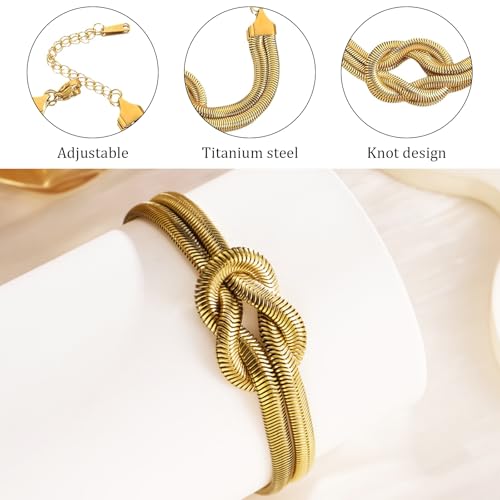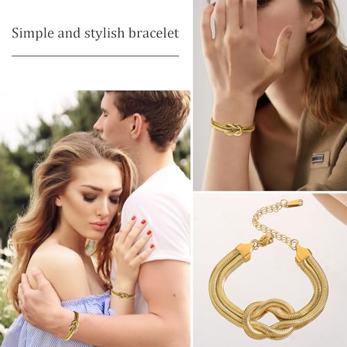 BONGSHAKALAKA - Pack of 2 18 K Gold-Plated Stacking Bracelets Infinity Bracelet Love Knot Bracelet Made of Titanium Steel Matching Couples Bracelet for Couples Twist Snake Bracelet Gold Bracelet Jewellery Gifts for