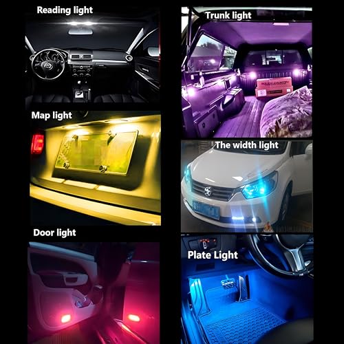 - Designed with versatility in mind, the T10 is suitable for multiple uses, including a reading lamp, dome lamp, ceiling lamp, trunk lamp, and interior lamp. Its wide application makes it a valuable addition to any vehicle, providing the flexibility you need based on different lighting requirements. In addition, because of the bright light feature, it can serve practical purposes, such as improving visibility during roadside emergencies or promoting festive decorations.
