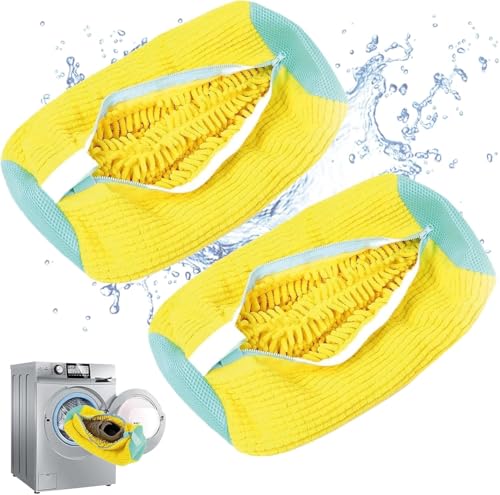 JNLODGE - Pack of 2 Shoe Wash Bags Washing Machine - Sneaker Wash Bag with Zip, Shoe Bag for Washing Machine, Reusable Wash Bag for Shoes, Protection and Cleanliness (Yellow)