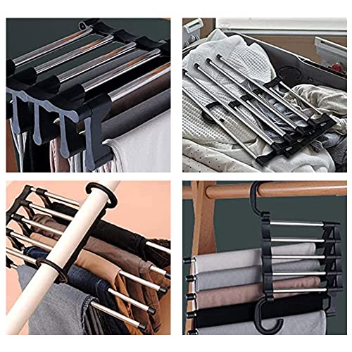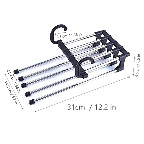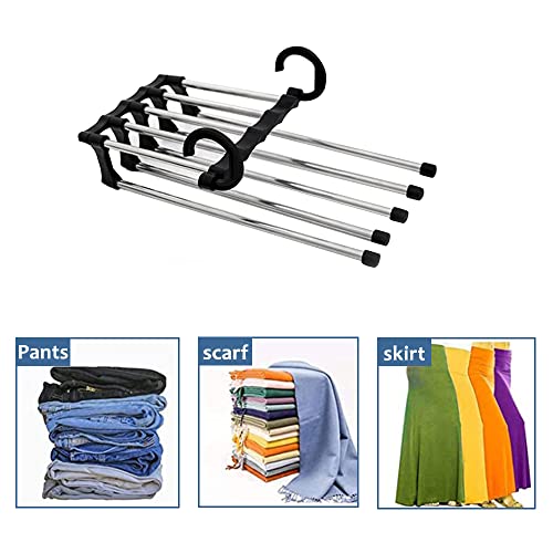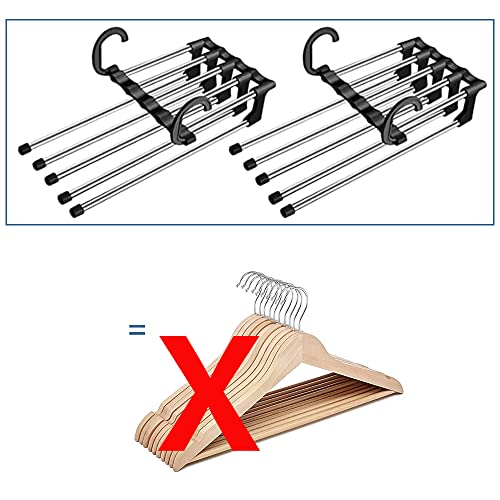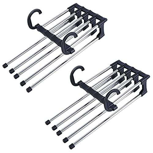 Ylinwtech - Pack of 2 Trouser Hangers Space-Saving Foldable Multi Hangers, Hanger Pants Rack Closet Organiser, Trousers Hangers Made of Stainless Steel for Trousers, Scarves, Jeans, Clothes, Towels (5 in 1)