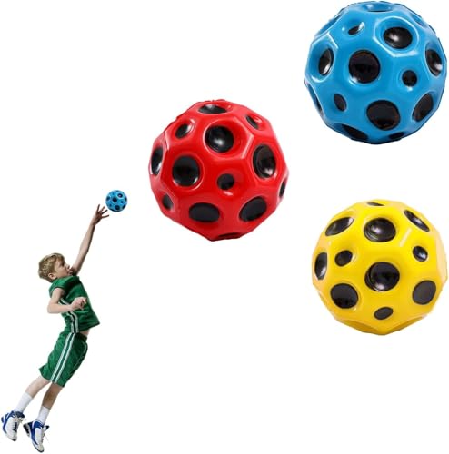 LC - عبوة من 3 كرات القفز الفضائية على شكل قمر، كرات مطاطية للقفز العالي 7 سم، كرة صغيرة مرتدة مع صوت فرقعة، كرات نطاطة لتقديمها كهدية للأطفال