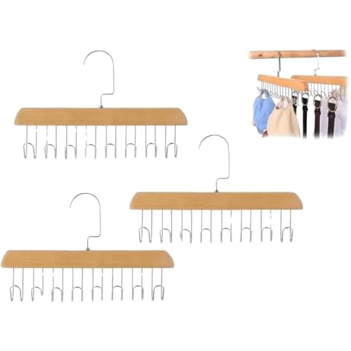 Generic - Pack of 3 Wooden Hanger for Clothes Hanging, Multi Purposes Can be used for Clothes, Accessories, Lingerie, Belts, Scarves Tops, Bras and Ties (8 Hooks for Each Hanger).