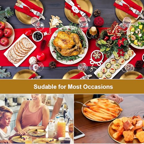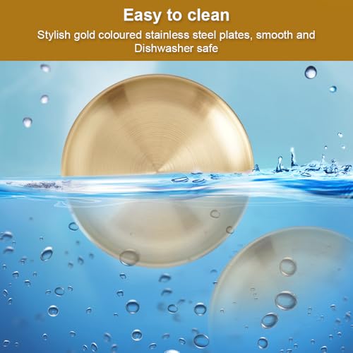 - High-quality stainless steel: serving plates stainless steel round golden are made of food-safe stainless steel, non-toxic and odourless, not easy to rust and resistant to falls, with a golden surface that brings a touch of luxury to your dining table.