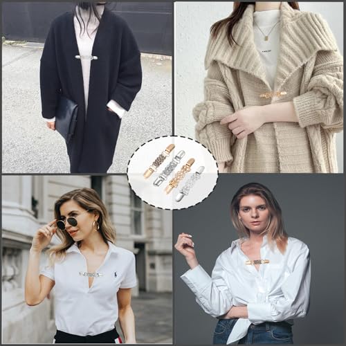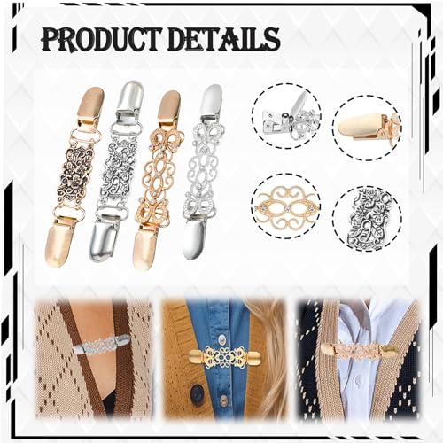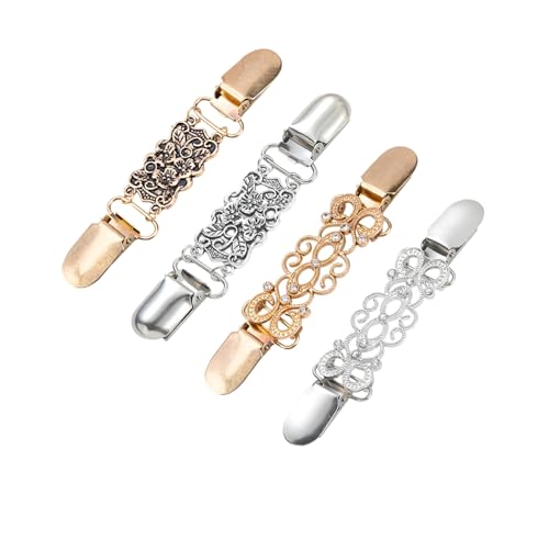 ZesNxj - Pack of 4 RCA Clips, Clips for Clothing, Cardigan Clip Sleeve Holder, Women, Alloy Vintage Waist Clip for Creative Cape, Jacket, Coat, Collar, Scarves, Coat (Gold, Silver)