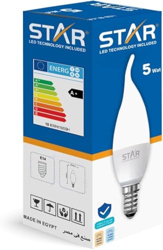 - SPECIFICATIONS: Standard E14 base type, 5W power consumption, cool white 6500K light output, candle/flame tip design