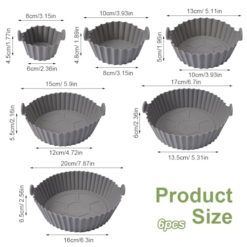 - محتويات العبوة: سوف تحصل على 6 مقاسات مختلفة من قالب السيليكون لمقلاة الهواء الساخن، كل منها 20 سم/17 سم/15 سم/13 سم/10 سم/8 سم. تُستخدم لأحجام مختلفة من الطعام ويمكن قليها في نفس الوقت لصنع أنواع مختلفة من الطعام.