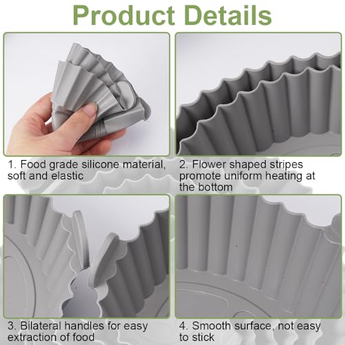 PetGlimmer - عبوة من 6 قوالب سيليكون للقلاية الهوائية الساخنة، حشوة سيليكون للمقلاة الهوائية، 6 احجام قالب خبز سيليكون للقلاية الهوائية الساخنة، قوالب سيليكون للقلاية الهوائية الساخنة للافران والميكروويف ومقالي
