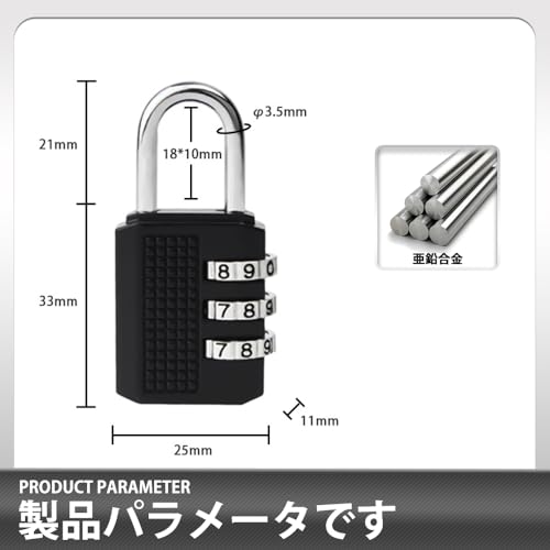 GINTAIMOYU - Padlock Combination Lock 3 Digit Auxiliary Combination Lock Zinc Alloy Portable Waterproof Anti-theft Small Easy to Set School Outdoor Office Travel Small Locker Bag Locks for Suitcase Wire Bag