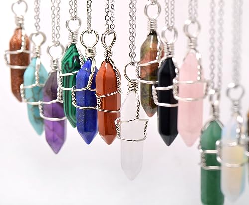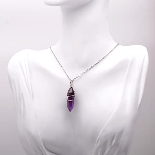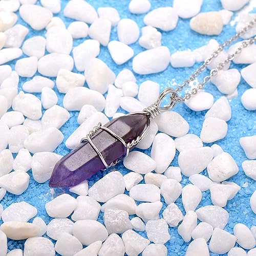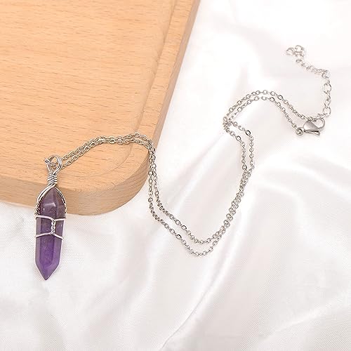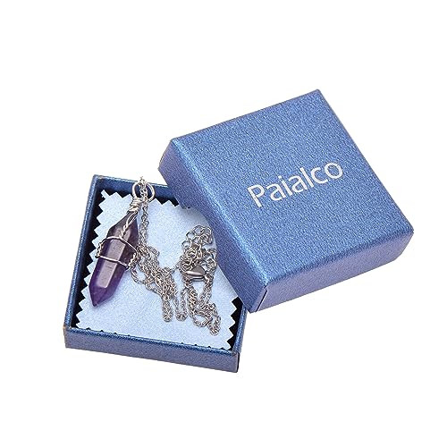 Paialco - بايالكو جوليري قلادة بدلاية شاكرا من الكريستال الطبيعي بسلك يدوي مقاس 18 انش الستانلس ستيل والنحاس والفضي والجمشت للنساء