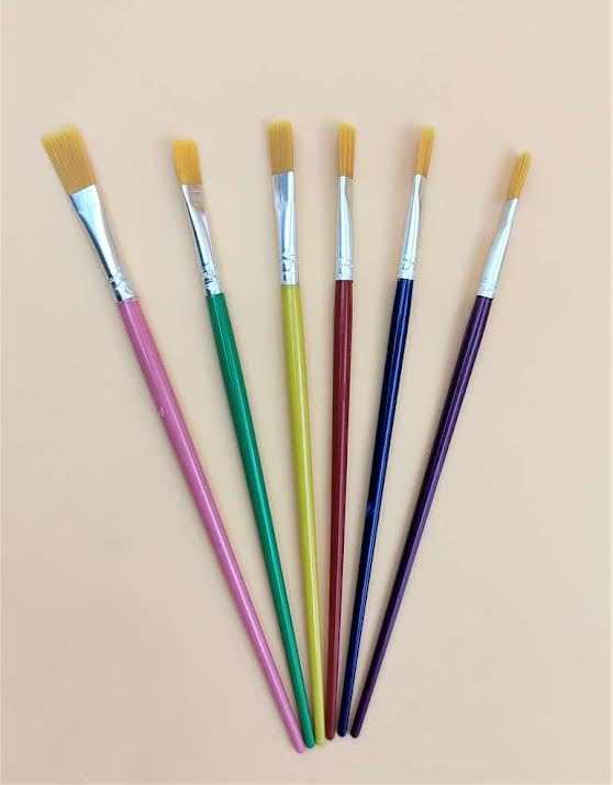 - VERSATILE SET: Pack of 6 paint brushes in vibrant colours - pink, green, yellow, red, blue, and purple, perfect for various artistic projects
