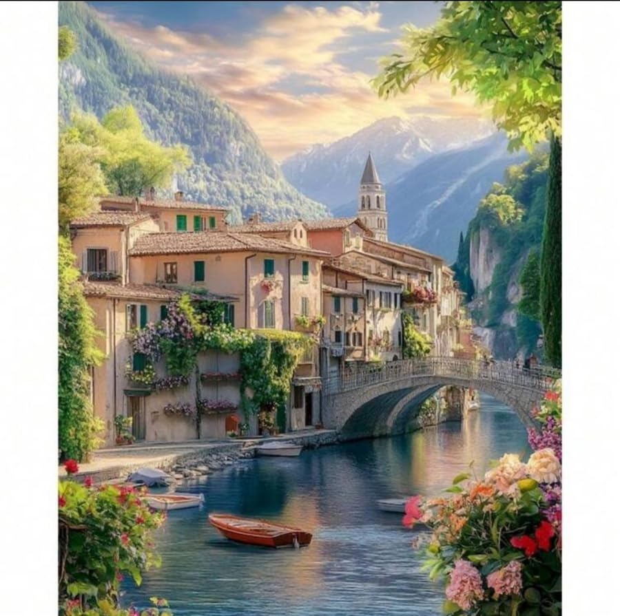 - تصميم فني: مشهد قرية إيطالية مذهل يتميز بجسر خلاب وعمارة تاريخية وآفاق جبلية، تم التقاطها بألوان زاهية وتفاصيل معقدة