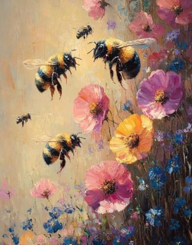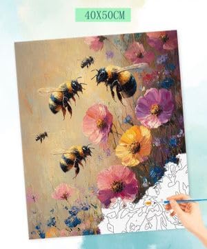 Generic - مجموعة الرسم حسب الارقام، تصميم النحل الصيفي والزهور، قماش 40 × 50 سم، مجموعة فنية يدوية للبالغين مع فرش وطلاء وشماعة ودليل مرجعي