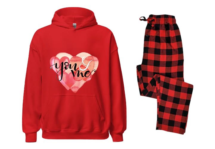 Generic - Pajama Set, Red Hoodie with You & Me Heart Print Plaid Pants Size (5XL)